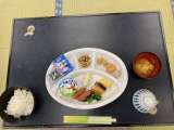 夕食の時間です。いただきますの号令で食事が始まりました。