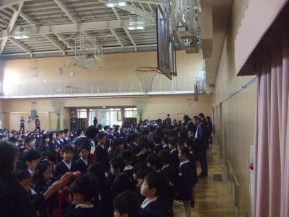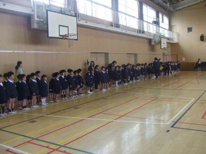 4月11日(木)1年生を迎える会を行いました。6年生のみなさんがリコーダーを演奏する中、1年生は笑顔で入場してきました。2年生のみなさんの手作りのメダルをかけてもらいみんなうれしそうです。