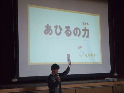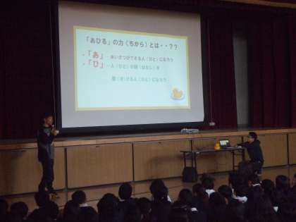 4月15日(月)昨日の雨も上がり爽やかな朝をむかえました。平成31年度初めての全校朝会を講堂で行いました。「今やらなめればならないことを全力で、常に自分の力を出し切ってください。完全燃焼してください。」という話をしました。また「あひるの力」をしっかり身に付けましょう。という話もありました。1年生もしかっりと話をきいていました。