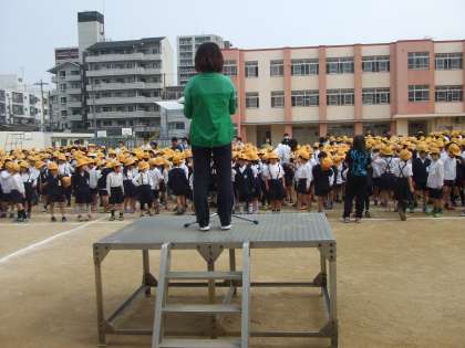 4月22日(月)暖かい朝です。今日は運動場で全校朝会を行いました。子どもたちは元気に登校しています。「今週の土曜日から10連休です。そして時代は令和になります。どんな時代になるのかな、ではなくこんな時代にすると決めてください。皆さんが時代を創っていくのです。大事なことは戦争なく平和でみんなが親切で優しい時代を創らなければなりません。そのためには身近な生活の平和から始まります。学校やクラスが大事です。悪口を言ったり、いじめたりということがなくみんなが仲良く学校生活お送ることが大事です。今、すでに仲良くしてくれています。これからも続けてください。」という話をしました。