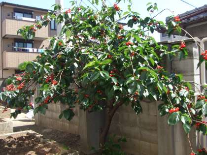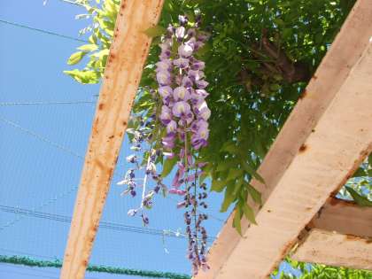 5月8日(水)素晴らしい天気です。爽やかな風の中サクランボが実っています。また、校庭西側の藤棚ではきれいな藤の花が咲いています。