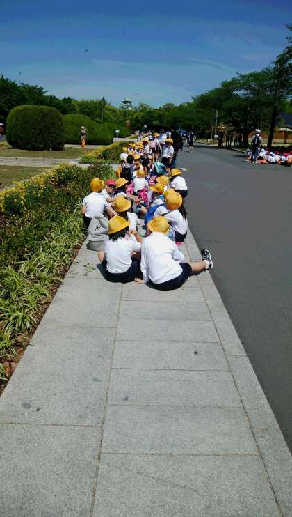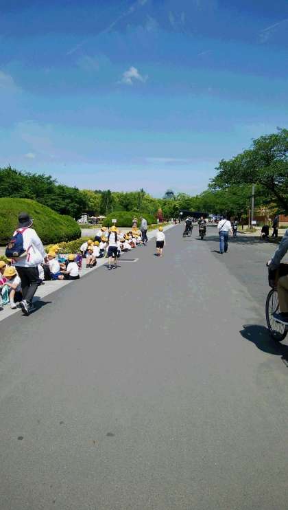 5月15日(水)素晴らしい青空です。無事大阪城公園に着きました。今から活動を開始します。