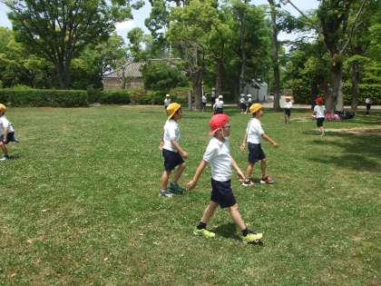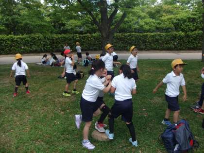 5月15日(水)2年生は大阪城公園へ遠足に行きました。お弁当の後はおやつを食べて広場で元気いっぱい遊びました。