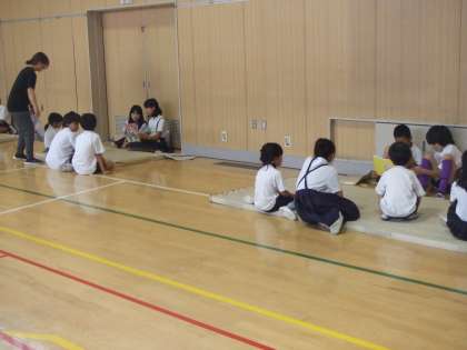 6月7日(金)5年生は平野西保育所のみなさんと交流会を行いました。朝から雨が降っていたのですがみんな元気に来てくれました。5年生の皆さんが絵本の読み聞かせをしたり、一緒にゲームをしたりと楽しい時間を過ごしました。