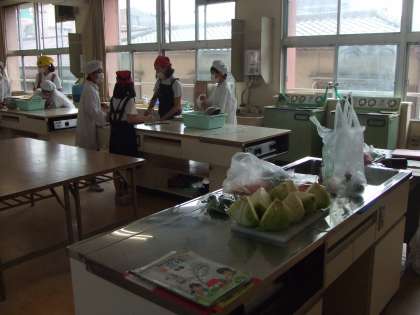 6月20日(木)調理実習の二日目です。野菜炒め、おいしくできたかな。準備しています。