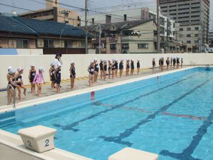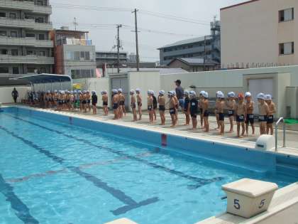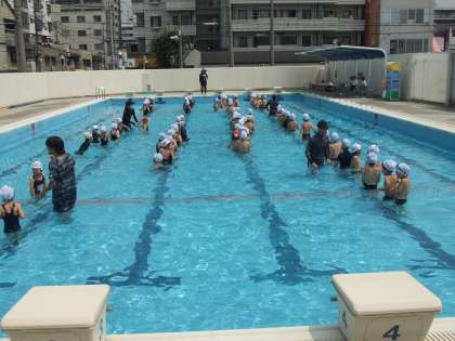 6月20日(木)いよいよプール開きです。1年生は平野西小学校の大きなプールに初めて入りました。プールから子どもたちの楽しい歓声が聞こえてきます。