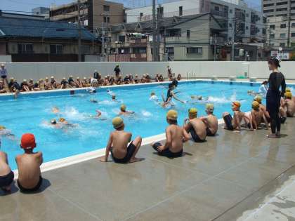 6月24日(月)4年生の水泳の授業の様子です。みんな元気に頑張っています。