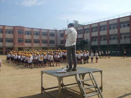7月8日(月)強い日差しが運動場に降り注いでいます。真夏を思わせるような朝ですが子どもたちは元気に登校しています。今日は水泳の授業でがんばっていることを話しました。一人一人が各自の目標に向かって一所懸命努力しています。「しんどくなった時に頑張ることが大事です。自分の目標に向かって挑戦し続けてください。それが自分自身の成長につながります。新しい自分と出会ってください。」