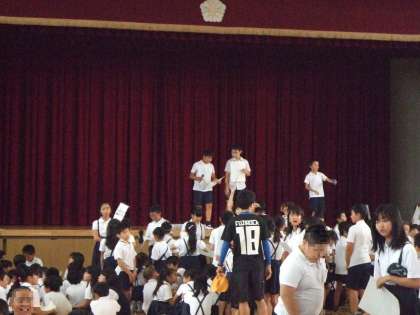 7月18日(木)児童集会を行いました。伝言ゲームで楽しい時間を過ごしました。
