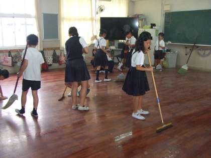 7月18日(木)今日で授業は終わりです。各学年、各クラス一所懸命掃除しています。