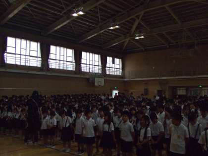 7月19日(金)昨日からの雨が残っている朝ですが子どもたちは1学期最後の日に元気に登校しています。終業式では「8月26日の2学期の終業式に元気に登校すること」という宿題をだしました。