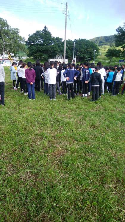 7月24日(水)二日目の朝を迎えました。子ども達はゆっくりねていました。天気は快晴。高原の爽やかな風が吹いています。朝の集いの様子です。二日目のプログラムが始まります。