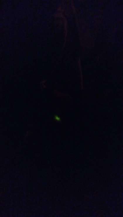 7月24日(水)ナイトハイクではたくさんの蛍をみることができました。写真の緑色の光は子どもの手に止まった蛍の光です。二日目のプログラムはすべて終了しました。ホームページの掲載も本日は今回で最終です。明日のプログラムもホームページに掲載します。