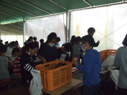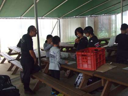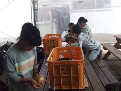 7月26日(金)林間学習の様子です。カレーつくり。食材を切っています。おいしいカレーができるように。
