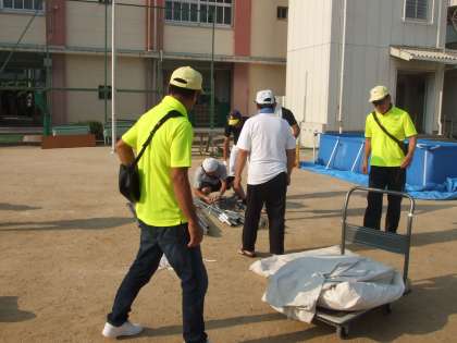 8月4日(日)本番当日、多くのみなさんが早朝から準備していただいています。