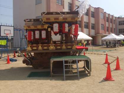 8月4日(日)夏の祭典本番当日、多くのみなさんが早朝から準備していただいています。各お店の準備も進んでいます。だんじりも来ていただきました。