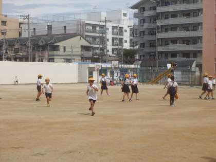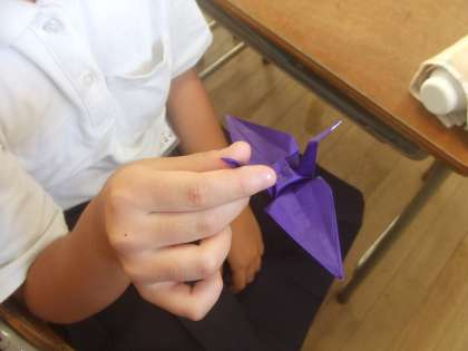 8月6日(火)平和登校日、子どもたちが登校し、平和について考えました。休み時間、元気に遊んでいます。2限目は祈りを込めて鶴を折りました。