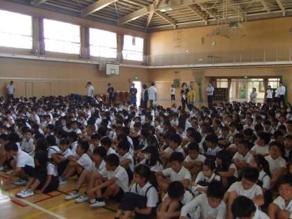 8月26日(月)長い夏休みも終わり2学期が始まりました。子どもたちは元気に登校しています。始業式では「各自が夏休みがんばりました。その頑張りを2学期に生かしてください。」という話とみんなの人気者のウサギのマロンが7月23日の朝、亡くなりました。マロンは前足だけで最後まで前へ進もうと頑張っていました。それは平西のみんなも頑張れとメッセージを出してくれているようでした。