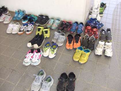 下の写真は5年生が体育館で練習をしているのですが靴をキッチと揃えて脱いでいます。素晴らしい!!子どもたちの気持ちが伝わってきます。