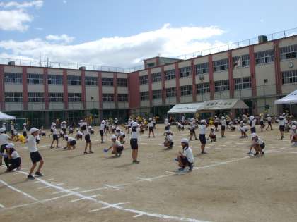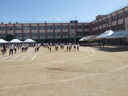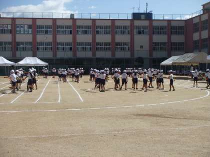10月4日(金)昨日の雨も上がり爽やかな天気です。子どもたちは運動会に向けて最後の練習をしています。上の写真は1年生、中は2年生、下は3年です。みんな良い顔をしています。