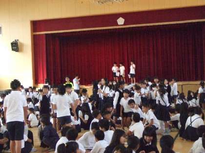 10月10日(木)朝から爽やかな風が吹き、秋らしい暖かな日差しが差し込んでいます。子どもたちは元気に登校しています。今日の児童集会は仲間集めゲームです。子どもたちの歓声が体育館いっぱいに響いています。楽しい時間を過ごしました。