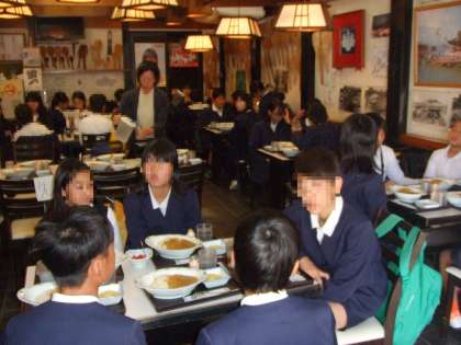 11月5日(火)修学旅行、宮島での昼食の時の様子です。