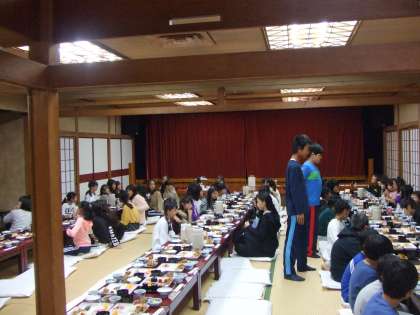 11月5日(火)修学旅行、旅館での夕食の様子です。