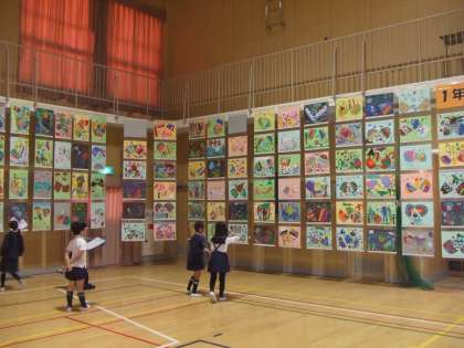 11月7日(木)作品展が始まりました。本日より9日(土)までの3日間、正門入って左側の講堂にて子どもたちの作品を展示しています。一人一人の子どもたちが一所懸命描いた作品を展示しています。どれも力作ばかり。まさしく平西美術館。子どもたちの素晴らしい作品を見に来てください。写真は1年生の作品です。