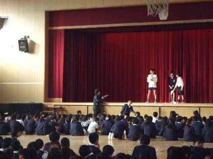 11月21日(木)の児童集会はじゃんけん列車です。子どもたちは楽しくじゃんけん列車に参加しています。楽しい時間です。