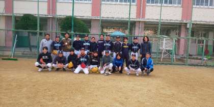 11月24日(日)爽やかな秋空のもと、PTAお父さんソフトボールチームと教職員、教員チームがソフトボールの親善試合を行いました。両チーム素晴らしいプレーの連続です。
