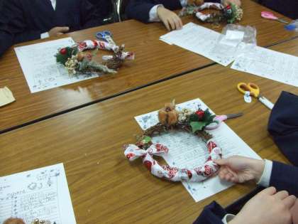 11月25日(月)子どもたちは生涯学習ルームの皆さんの指導のもと、クリスマスリース作りを行っています。きれいなクリスマスリースができています。