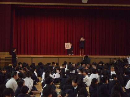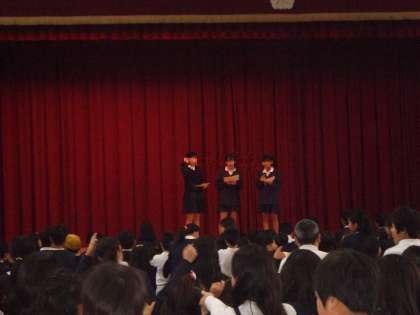 11月28日(木)朝から寒い風が吹いています。本格的な冬の到来でしょうか。そんな寒い朝ですが子どもたちは元気です。今日の児童朝会は先生の名前ならびかえゲームです。