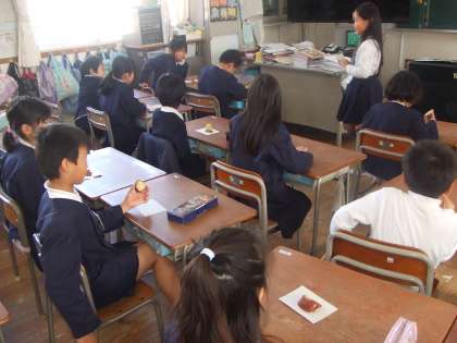 12月20日(金)2年生は収穫したサツマイモを食べています。蒸かしたさつまいも、おいしかったです。子ども達は笑顔でサツマイモをほうばっています。