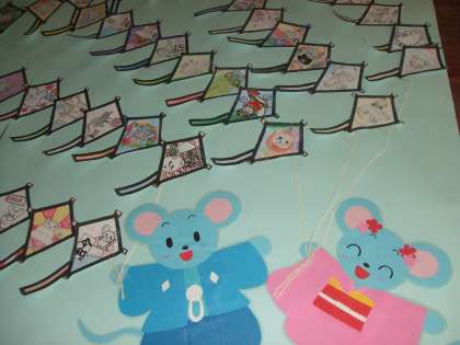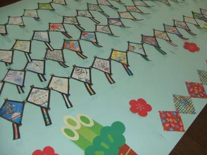 1月7日(火)5年生が今年の干支のねずみを凧に描いています。玄関に掲示するためのに一所懸命作りました。