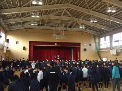 1月9日(木)昨日の雨も上がり子ども達は元気に登校しています。今日の児童集会はフラフープ送りです。みんな楽しくフラフープ送り行いました。