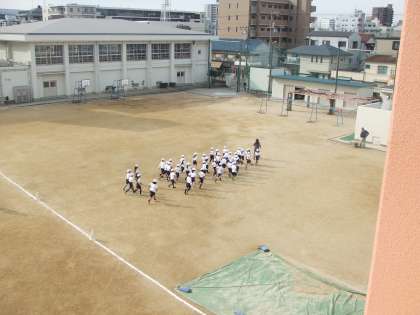 1月14日(火)少し寒い朝です。3連休明けですが子ども達は元気です。1年生は寒さに負けず運動場を走っています。みんな頑張れ。
