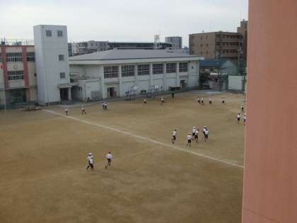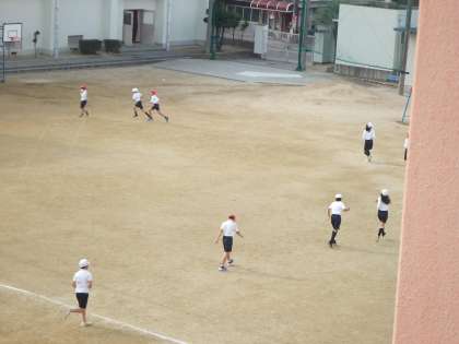 1月14日(火)6年生は運動場で走っています。みんな寒さに負けず頑張っています。