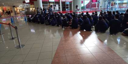 1月21日(火)キッザニア甲子園に無事到着しました。今から活動を開始します。天気も良く、子ども達は元気です。