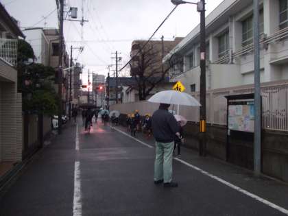 1月23日(木)朝から雨が降っています。子ども達は傘をさして登校しています。そんな子ども達を見守り隊の方が青パトでパトロールしてくれています。