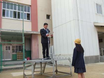 2月3日(月)先週の寒さも少し和らいだ節分の朝、子ども達は元気に登校しています。全校朝会で平西フェスティバルの表彰状を渡しました。
