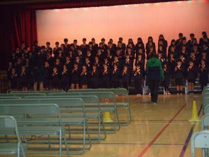 2月14日(金)6年生は明日の発表会に向けて最後の練習をしています。みんな一所懸命、歌い、合奏しています。そして、並んでいる椅子は6年生が準備しました。明日の発表会が楽しみです。