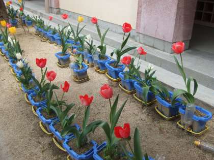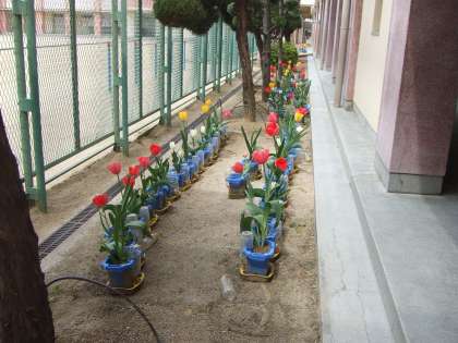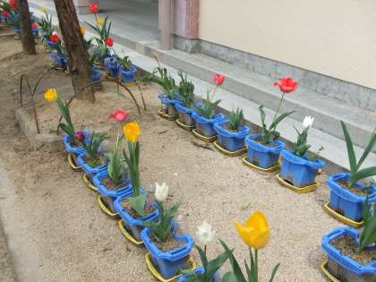 4月7日(火)新2年生が昨年育ていたチューリップがきれいに咲いています。