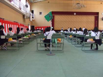 5月14日(木)5年生は立派な態度で先生の話を聞いています。子ども達の元気な声が体育館に響きました。上の写真は2組、下の写真は3組です。