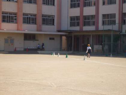 5月22日(金)今日は登校日です。学年ごとに手を洗う場所が決まっています。今日は晴れているので運動場を通って移動しています。