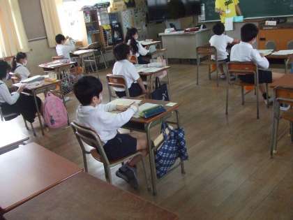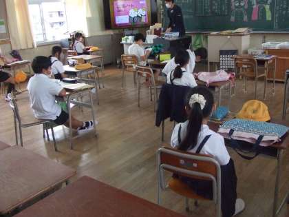 5月22日(金)登校日、4年生の様子です。上から4年1組、4年2組、4年3組。