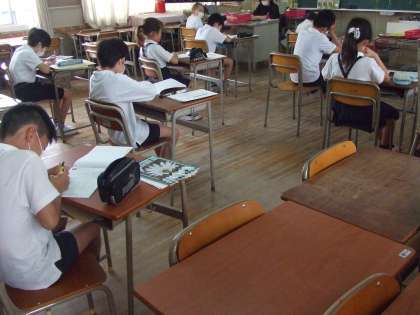 5月22日(金)登校日、5年生の様子です。上から5年1組、5年2組、5年3組。