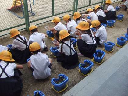 6月2日(火)授業開始2日目です。子ども達は緊張した中にも笑顔で授業を受けています。1年生は朝顔に水をあげています。きれいな花が待ち遠しいですね。