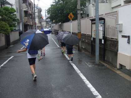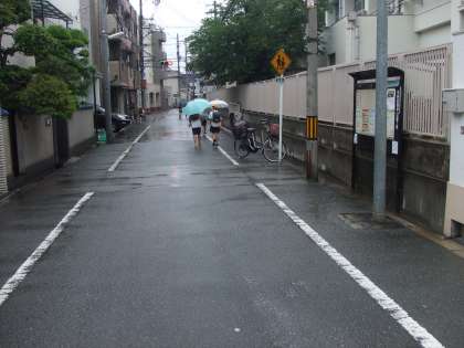 6月11日(木)前半の子ども達の下校時間に雨が降ってきました。子ども達は雨の中傘をさして元気に下校しています。