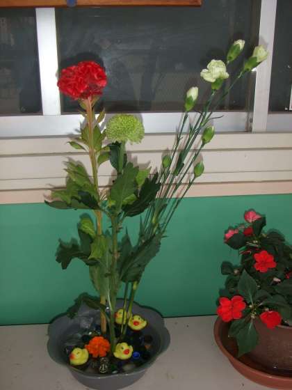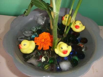 6月22日(月)校長室の花が新しくなりました。あひるが涼しそうに泳いでいます。