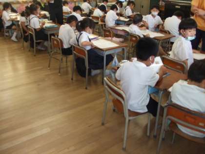 6月26日(金)今日は蒸し暑い一日ですが子ども達は元気です。写真は左から1年生、2年生、3年生です。